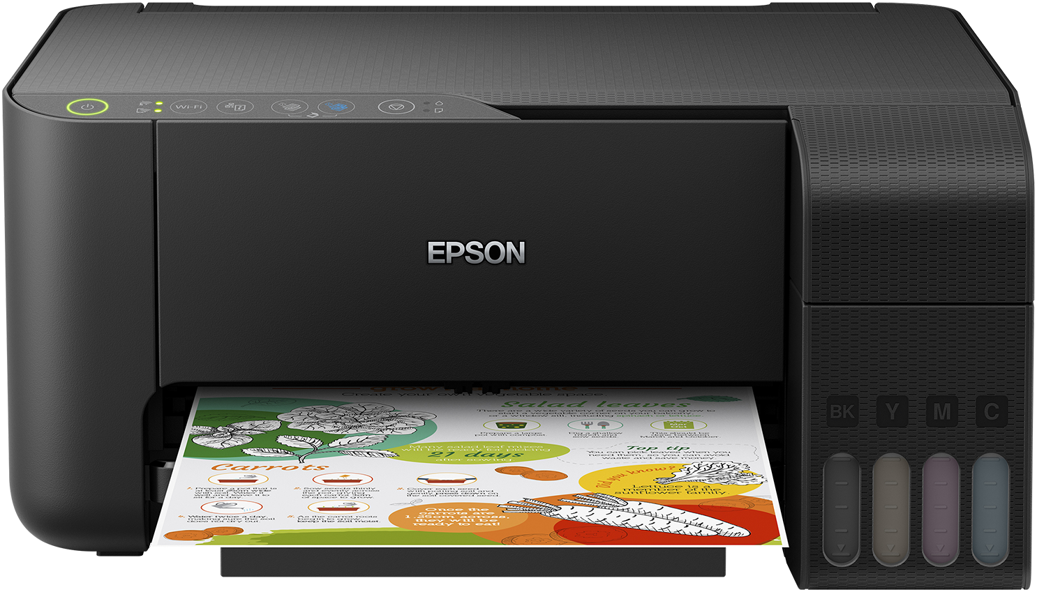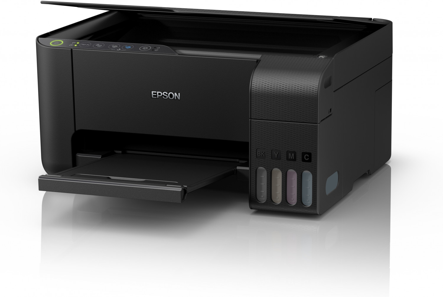 Wi-Fi Direct özellikli bu 3'ü 1 arada EcoTank, şık ve kompakt tasarımı, mobil baskı özelliği ve verimli teknolojisi sayesinde her açıdan ön plana çıkıyor. Bu güvenilir kartuşsuz yazıcıda gelişmiş bir mürekkep dolum sistemi ve kullanımı kolay mürekkep şişeleri bulunur. Üç yıllık mürekkep sayesinde mürekkep maliyetlerinden %90'a kadar tasarruf sağlayabilirsiniz.