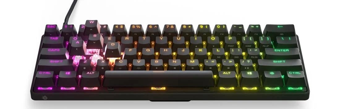 Apex Pro Mini, tuşların yanına basılmış ikincil işlevleriyle tam boy bir klavyenin bütün yeteneklerini korurken masanızda oyun kazandıran fare hareketleri için daha çok yer bırakacak şekilde üretilmiştir.